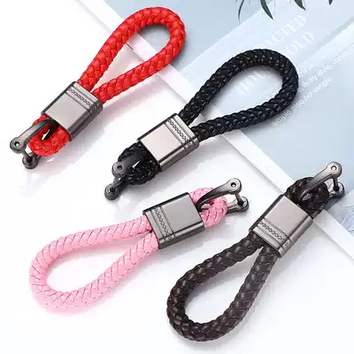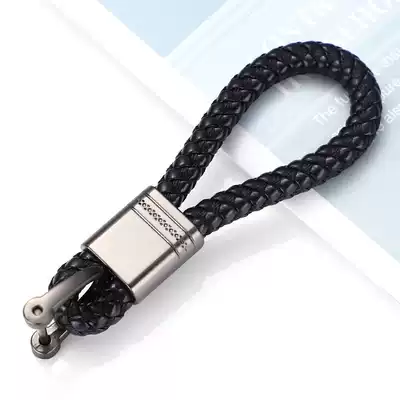 Car keychain anti-drop horseshoe buckle stainless steel lanyard accessories number plate key buckle male and female small black rope