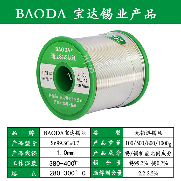 Baoda tin industry environmental protection lead-free high temperature resistant 280-300 degrees solder wire solder wire high melting point tin wire 1 0mm