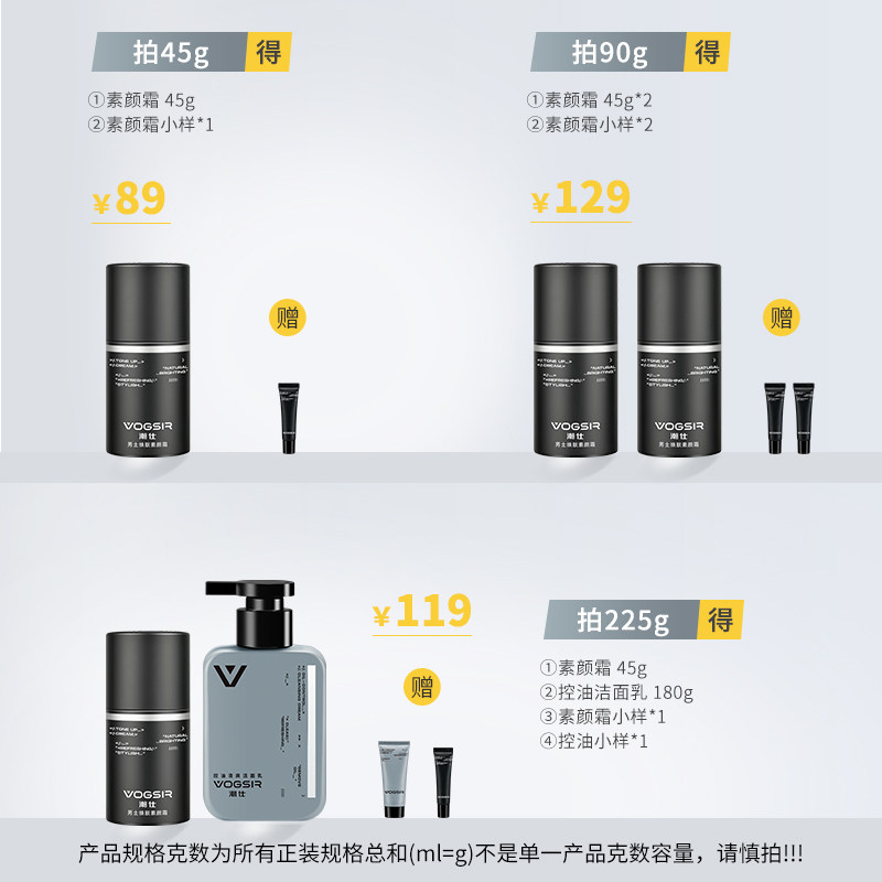 Vogsir Men's Soothe Cream Concealer Acne Print Lazy BB Cream Natural Color Cosmetic Set
