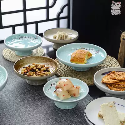 Small fruit plate (pink Green)_high-grade hand-painted ceramic small fruit plate (fish leap Red River)_high-grade hand-painted small fruit plate (Matt White gray green lotus)_high-grade small fruit plate (hand-painted spray point Lotus)_high-grade