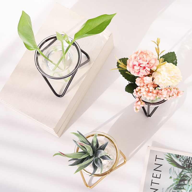 Creative hydroponic ins wind simulation plant glass bottle green plant small ornament potted living room indoor desktop decoration