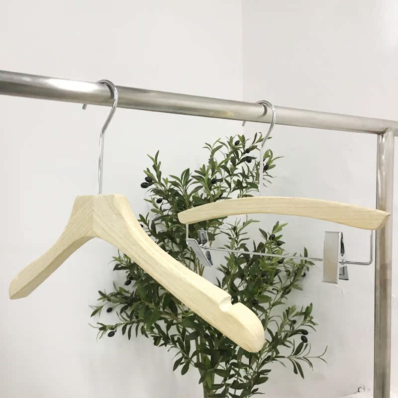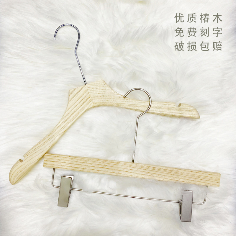 Clothing Store Special Solid Wood No Lacquered Clothes Hanger Toon Wood Original Wood Color Non-slip Clothes Hanger Pants Clip Men's And Women's Clothing Shop Engraving Logo