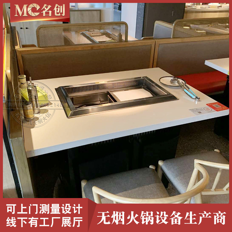 Smoke-free barbecue table Commercial induction cooker Self-baking hot pot integrated hot pot table and chairs combined restaurant shop Lower smoke-Taobao