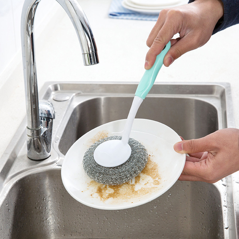 Long Handle Pan Brush Kitchen Clean Wash Pan Brush Home Decontamination Multifunction Dishwashing Pan Wire Ball Brushed Pan God