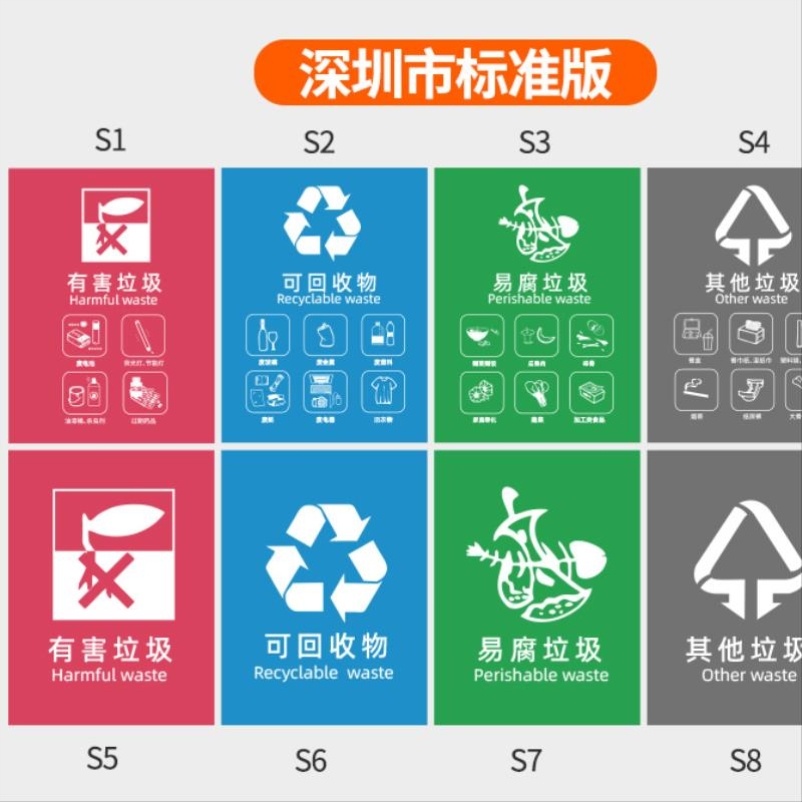 2020 Trash Bins Classification Logo Stickers Other Recyclable Kitchen Residual Harmful Signs Cue Cards New Standard
