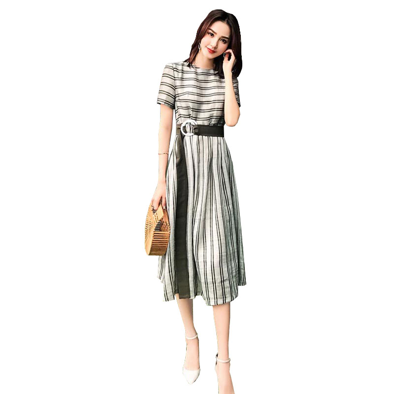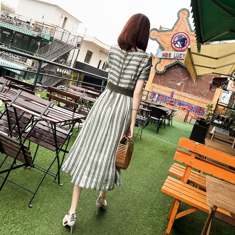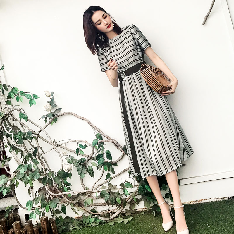 Malcenl klon Chiffon skirt stripes cold wind dress female sweet medium and long version 2020 temperament simple