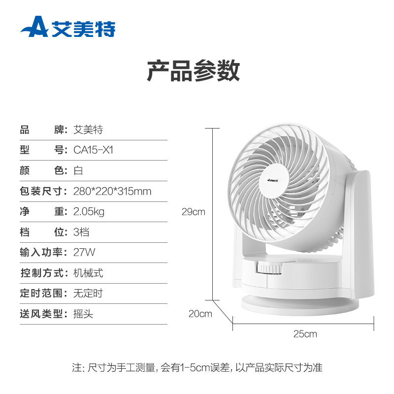 Emmett circulation fan Desktop household CA15-x1 turbine air convection moving head fan Small silent office