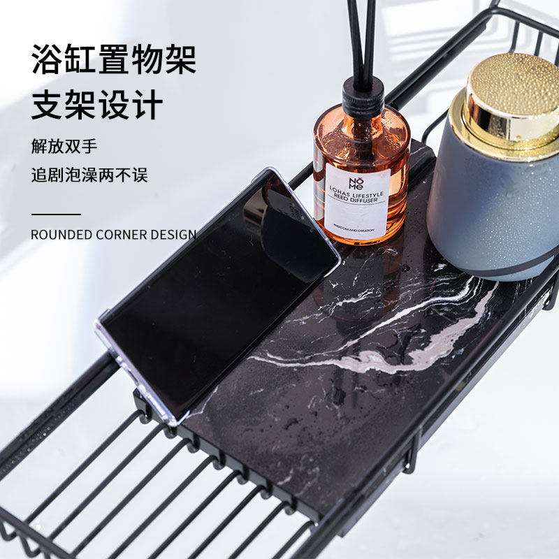 Bathroom bathtub rack retractable multi-functional bathtub rack bathroom bath mobile phone rack golden storage rack Nordic