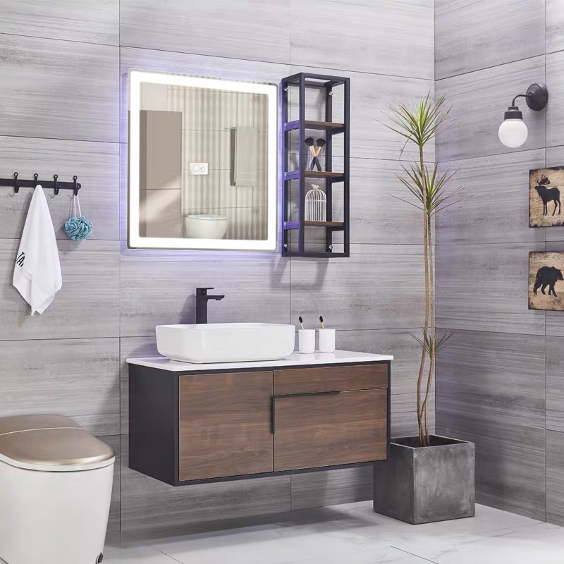 Solid wood bathroom cabinet combination modern minimalist bathroom washstand light luxury washbasin cabinet smart mirror bathroom cabinet