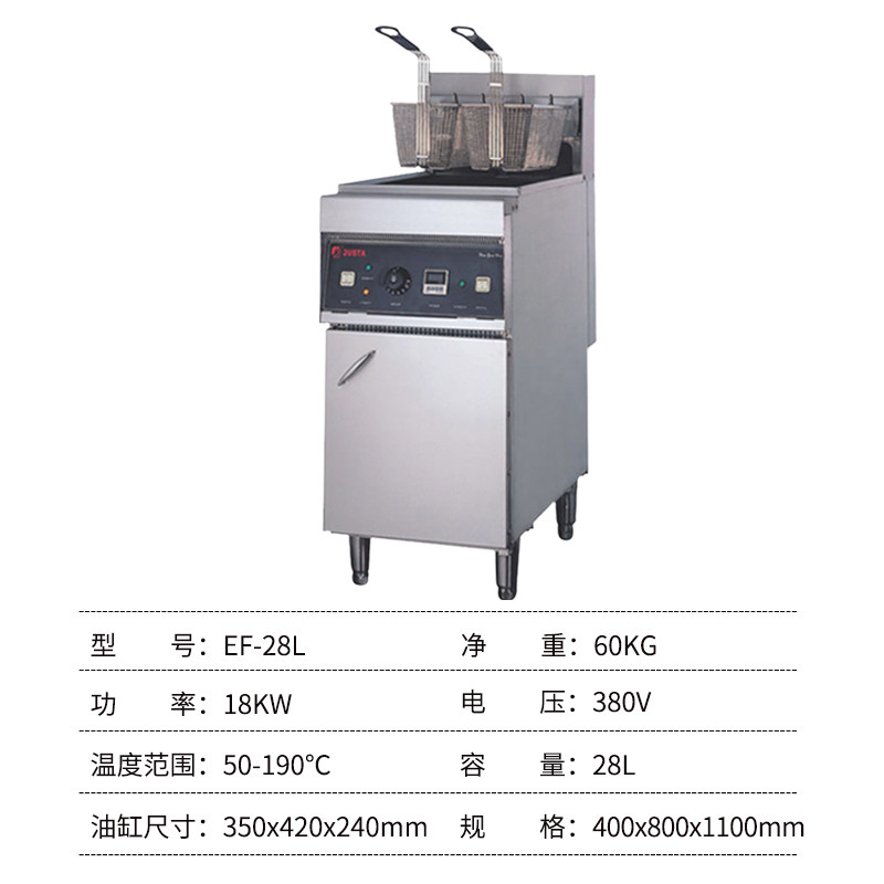 JUSTA CANTER VERTICAL ELECTRIC FRYER Commercial large capacity 380V Large single double cylinder Fried Chicken Pan EF-28L-2
