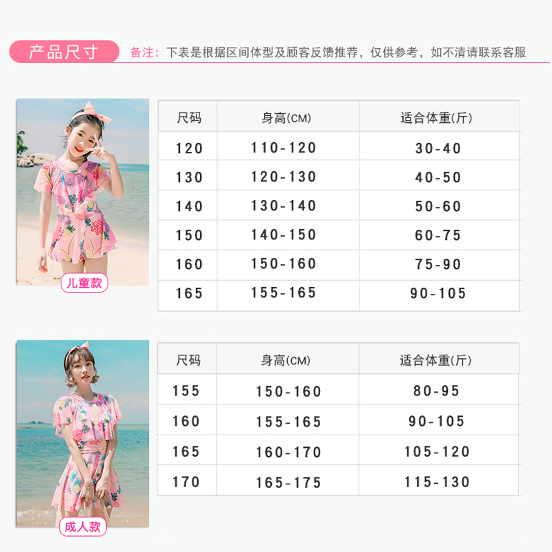 Pineapple print ins wind mother and daughter bathing suit Family parent-child outfit one-piece dress girl cute hot spring bathing suit female