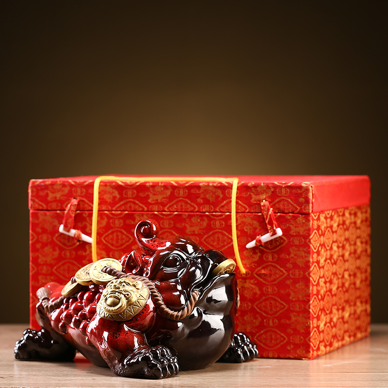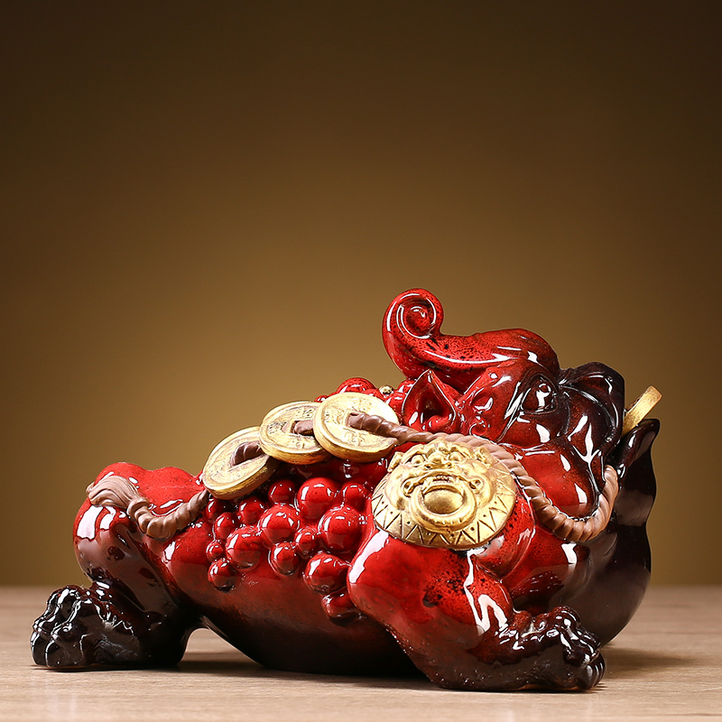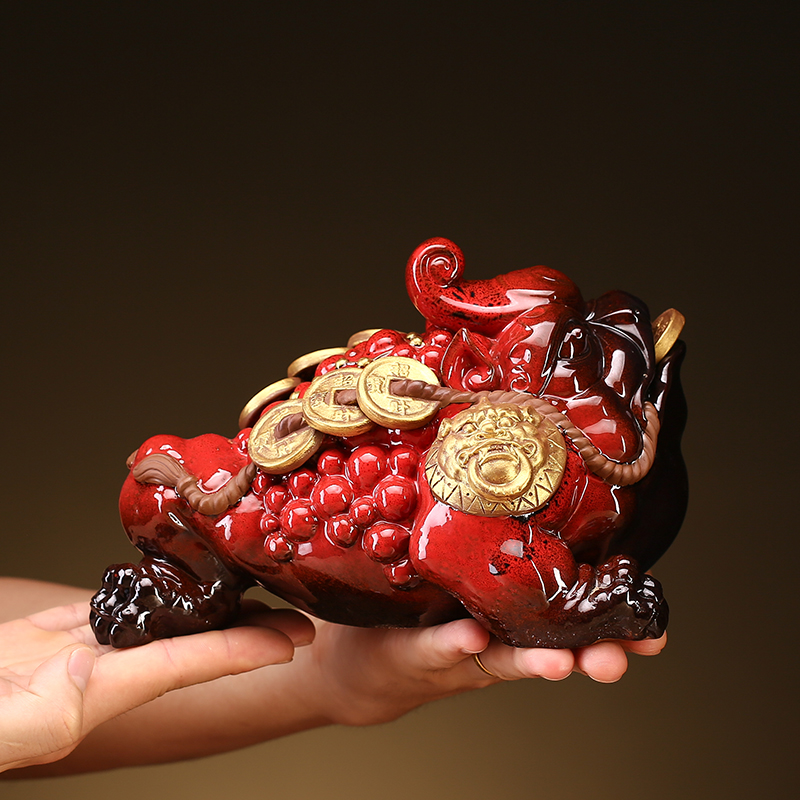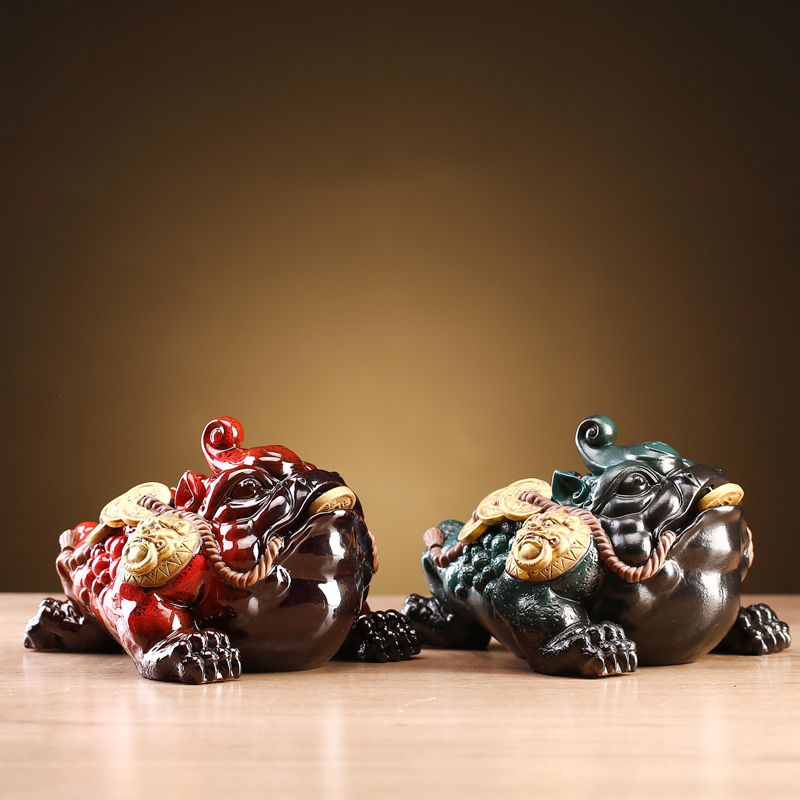 Lucky golden toad ornament ceramic three-legged toad living room office desktop decoration golden cicada shop opening gift