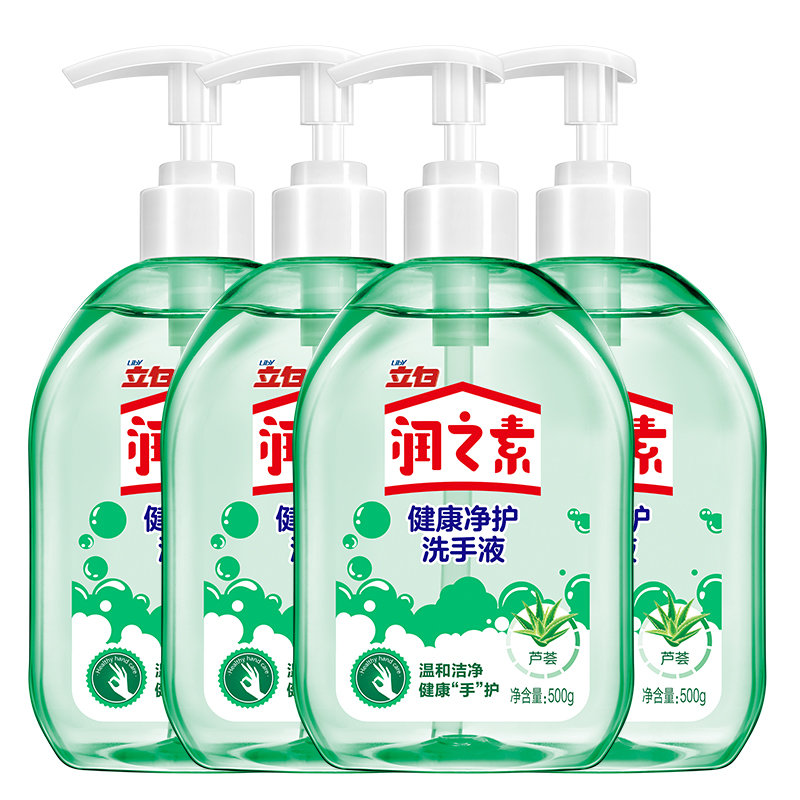 Libai Runzhisu hand sanitizer aloe antibacterial moisturizing cleaning 500g * 4 household affordable press bottle type