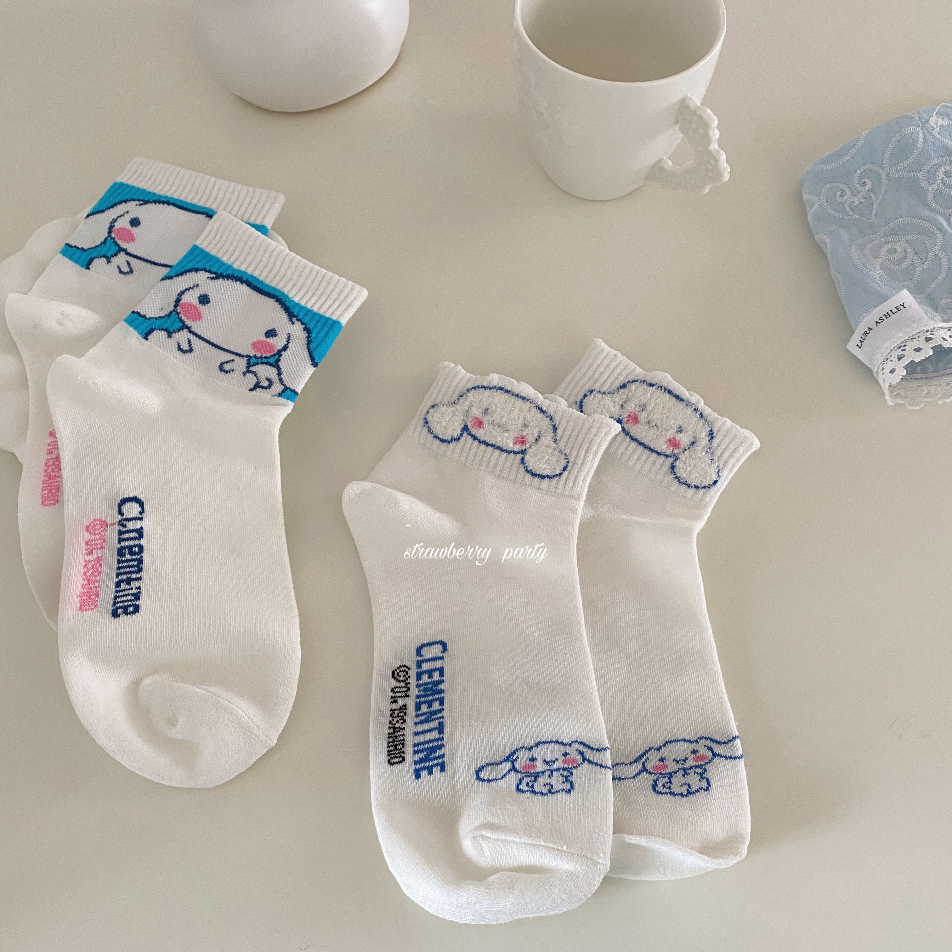 Strawberry Party 3 Pieces Cartoon Jade Gui Dog Midbarrel Socks Cute Day Ensemble Student Socks Children's Chains