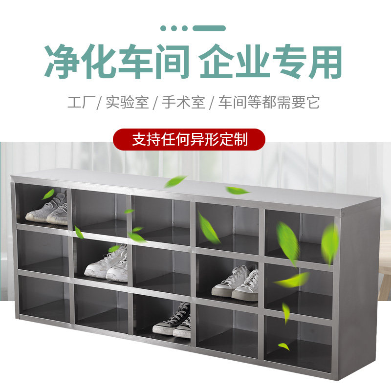 Stainless steel employee shoe cabinet factory laboratory dust-free purification workshop shoe changing stool changing room double-sided doorless shoe cabinet
