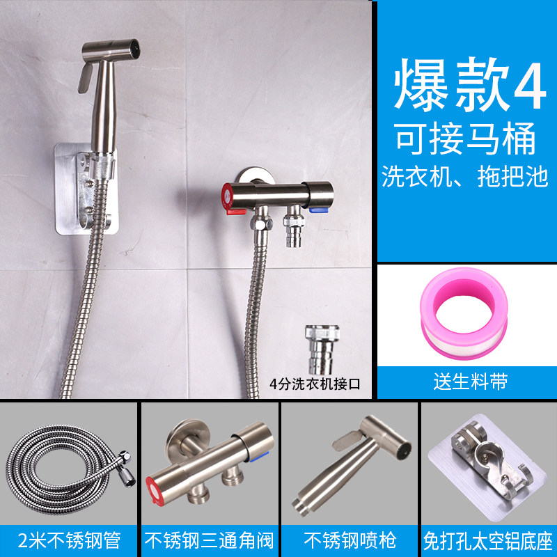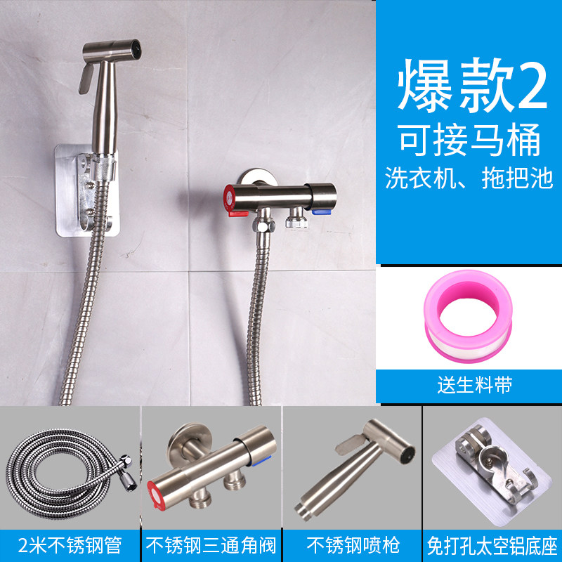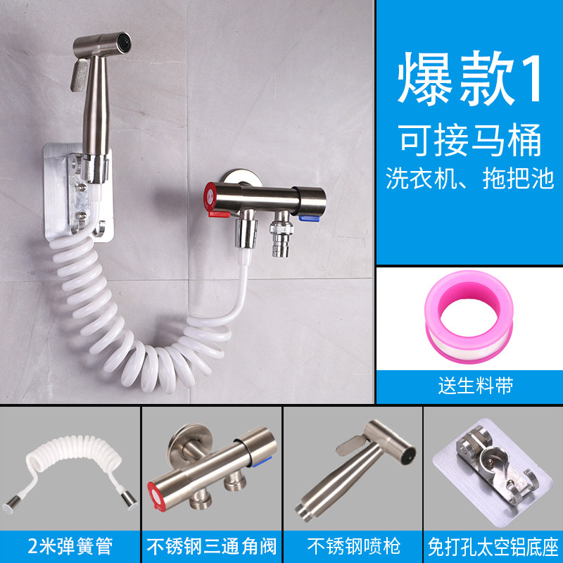 304 stainless steel spray gun spray gun free of punch base spray gun base 2M spring pipe spray gun base 2M stainless steel pipe spray gun base three-way angle valve 2M spring pipe spray gun base