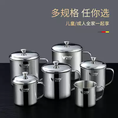 Xiaini 304 stainless steel water cup Household tea bowl Children's cup with lid with handle anti-fall kindergarten cup