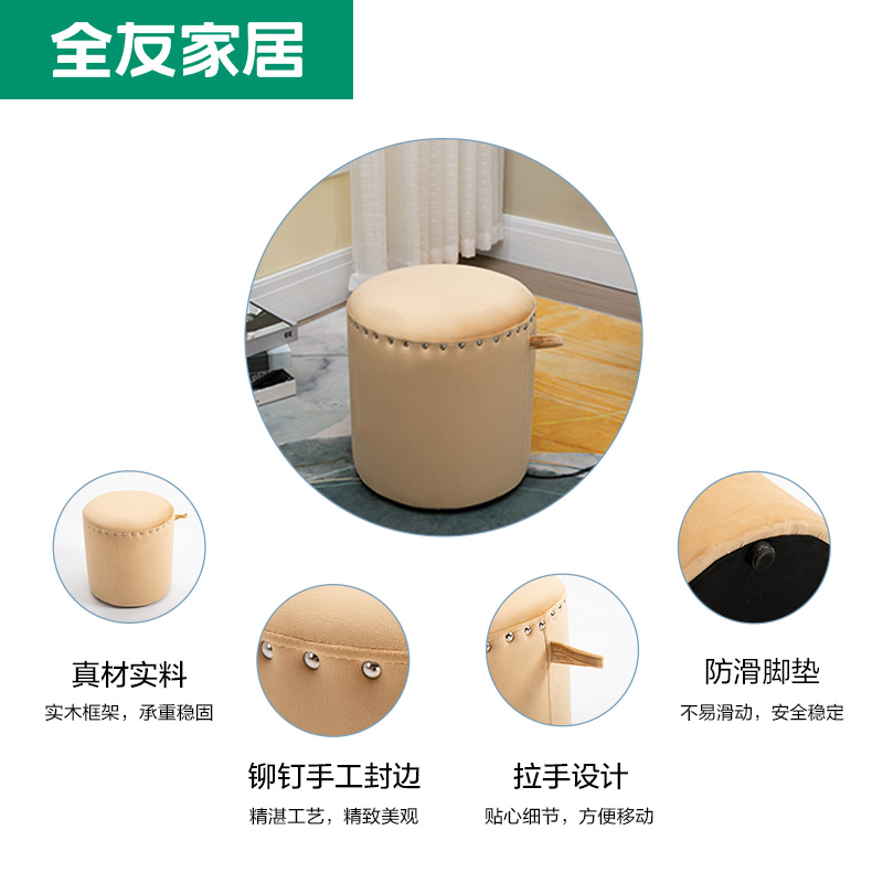 Full Friend Furniture Nordic Rivet Small Round Stool Changing Shoes Stool Modern Little Bench Two Colors Optional Bench DX101030
