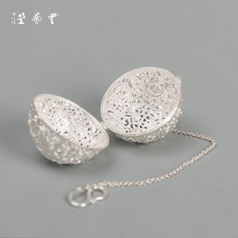Yunyun Hall Hand 999 pure silver tea bubble tea filter spherical tea insulation creative tea leak hollow