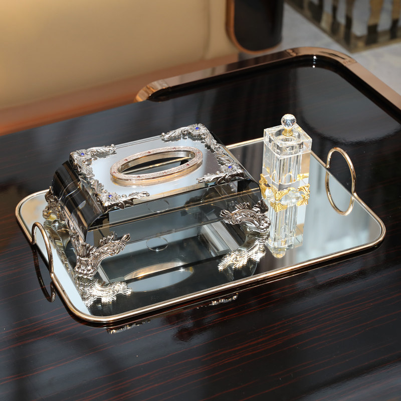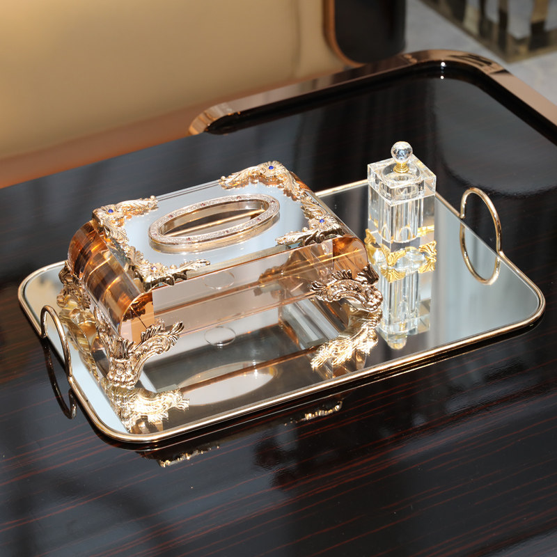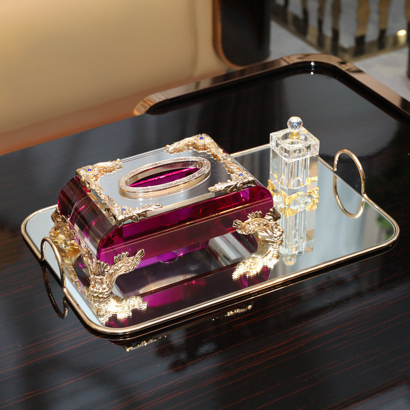 Toothpick holder + European gold tray + Lafite purple tissue box 3-piece set