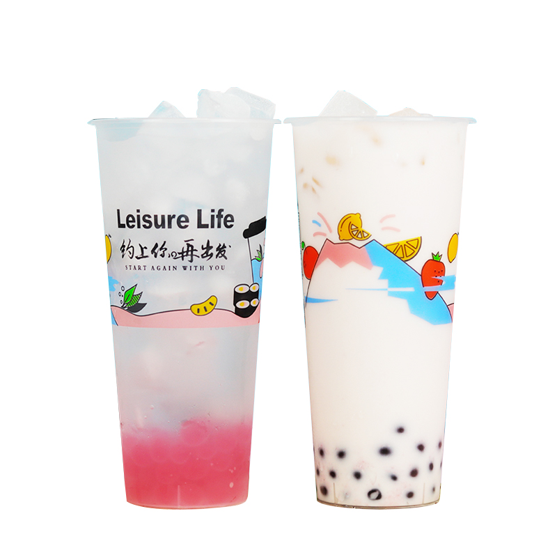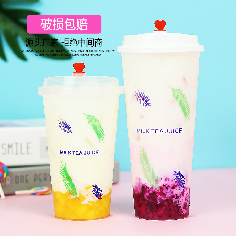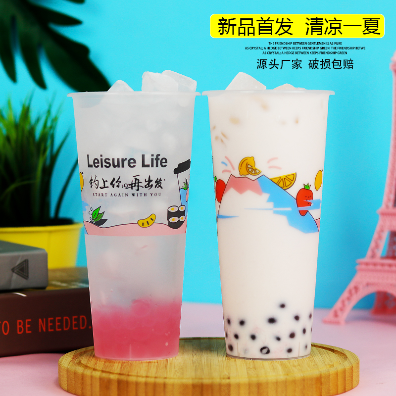 90 disposable injection molded Cup Net red thickened frosted milk tea cup plastic juice packing Cup commercial with lid can be customized