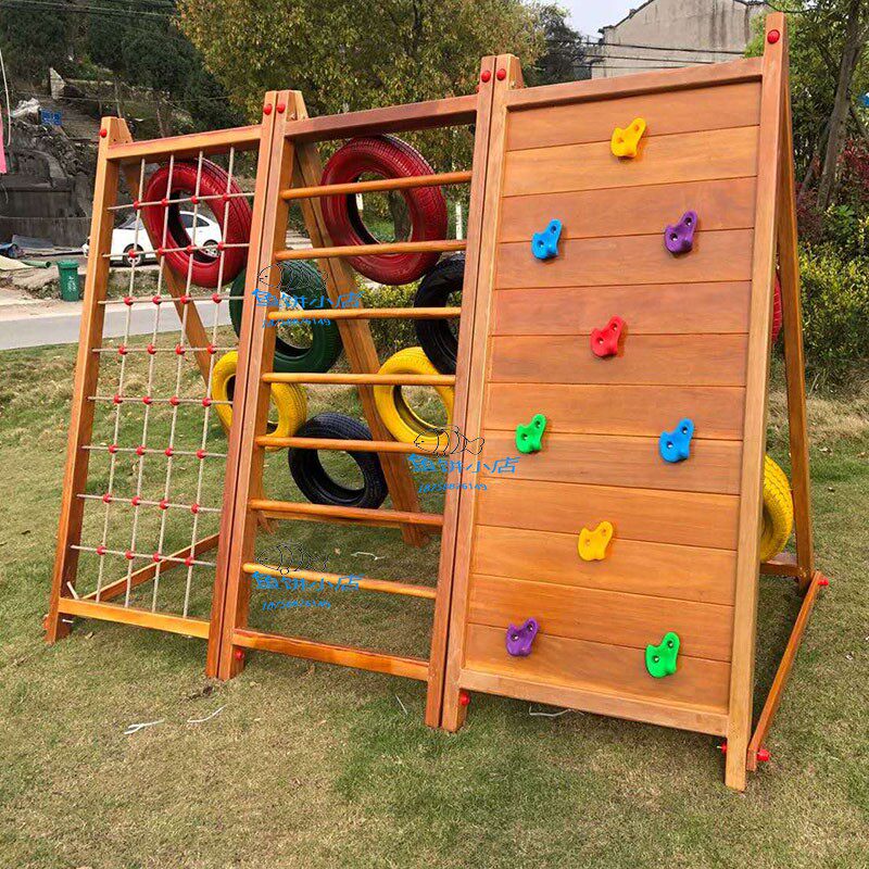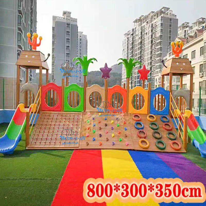 Kindergarten Outdoor Large Wooden Slide Bridge Climbing Wall Drilling Hole Yellow Huang Pear Children's Physical Training Combination