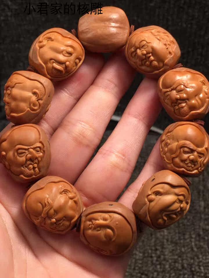 Olive core bracelet with big seeds, realistic eighteen arhats, playing handle pieces, pure handmade boutique olive and core carving bracelet