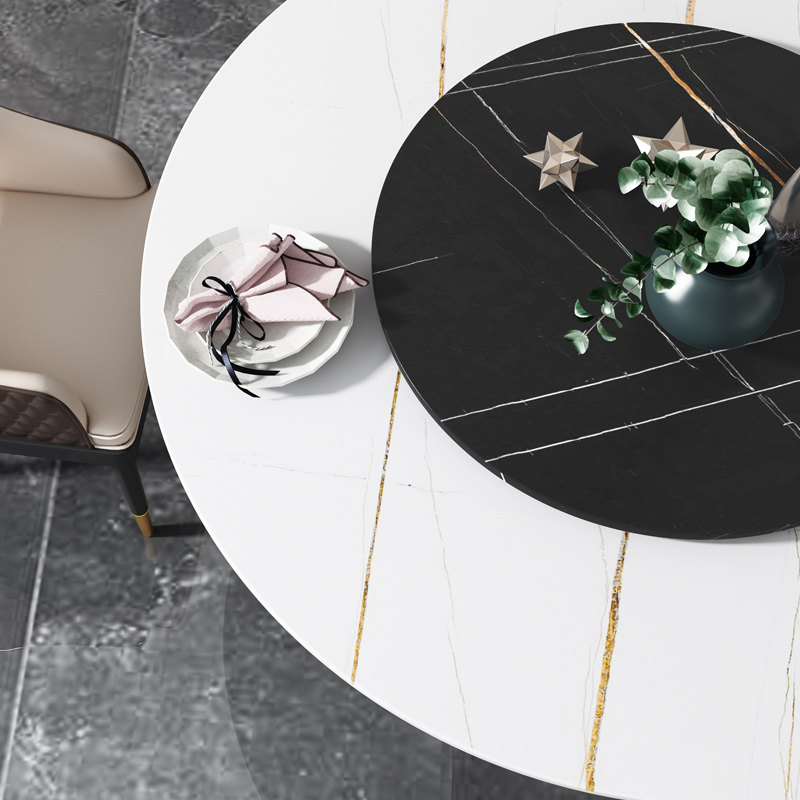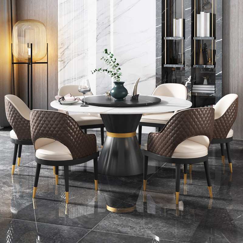 Marble slate dining table round table with turntable home light luxury modern minimalist Nordic round table and chair combination 8 people
