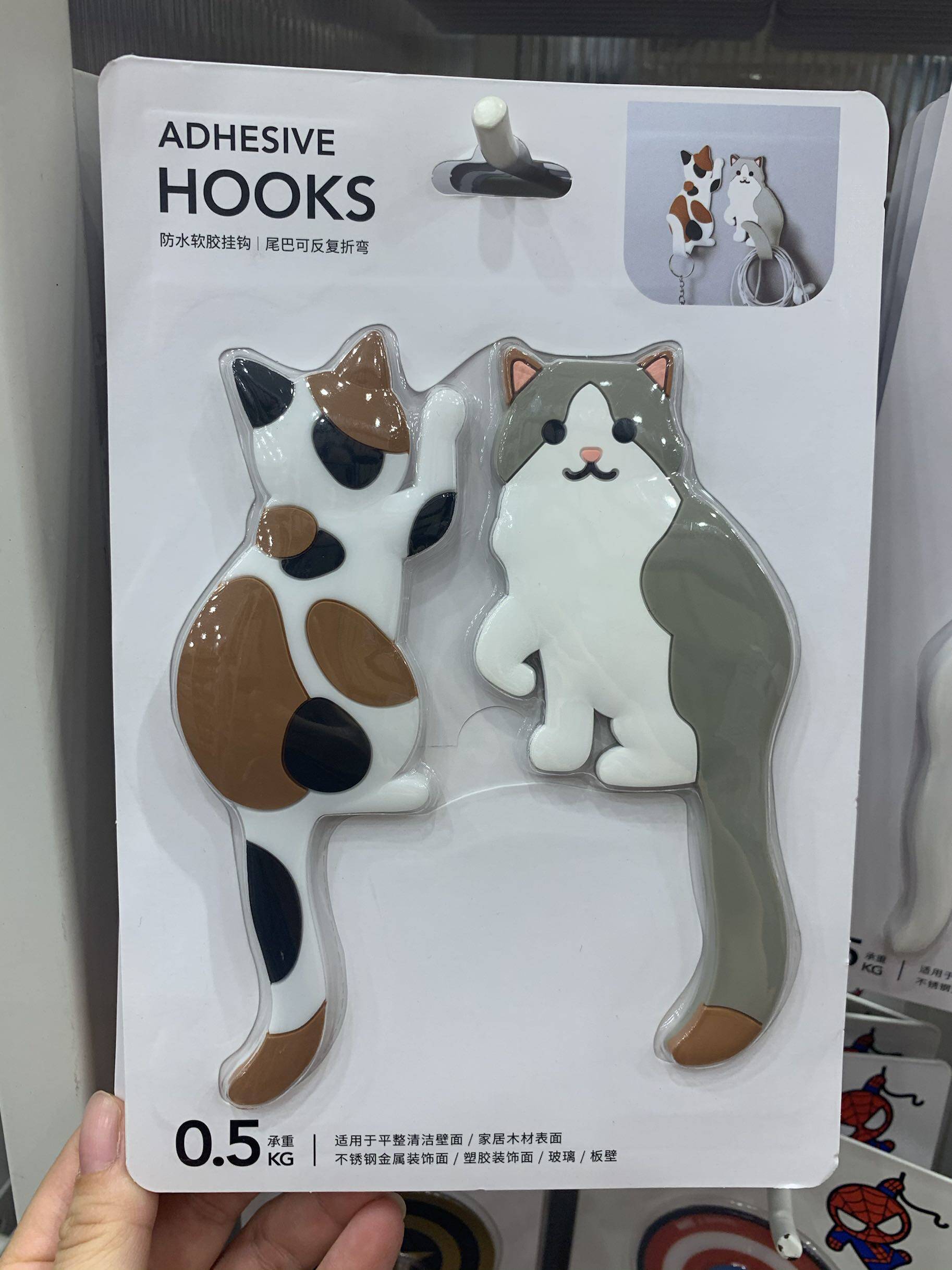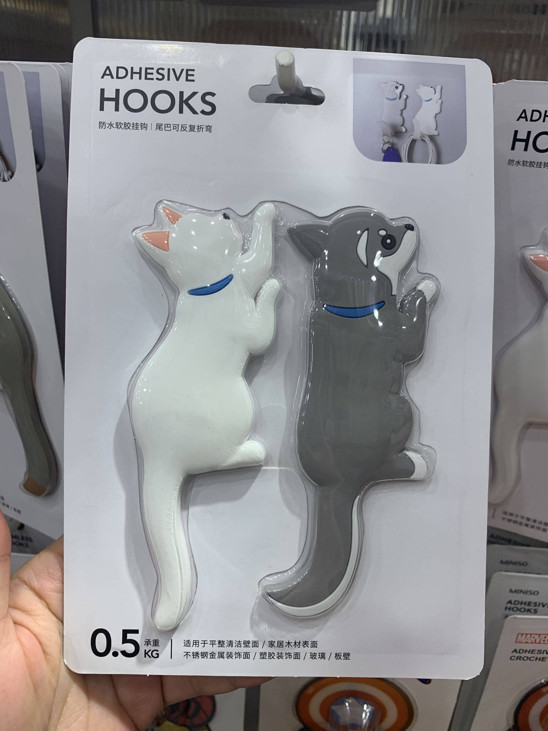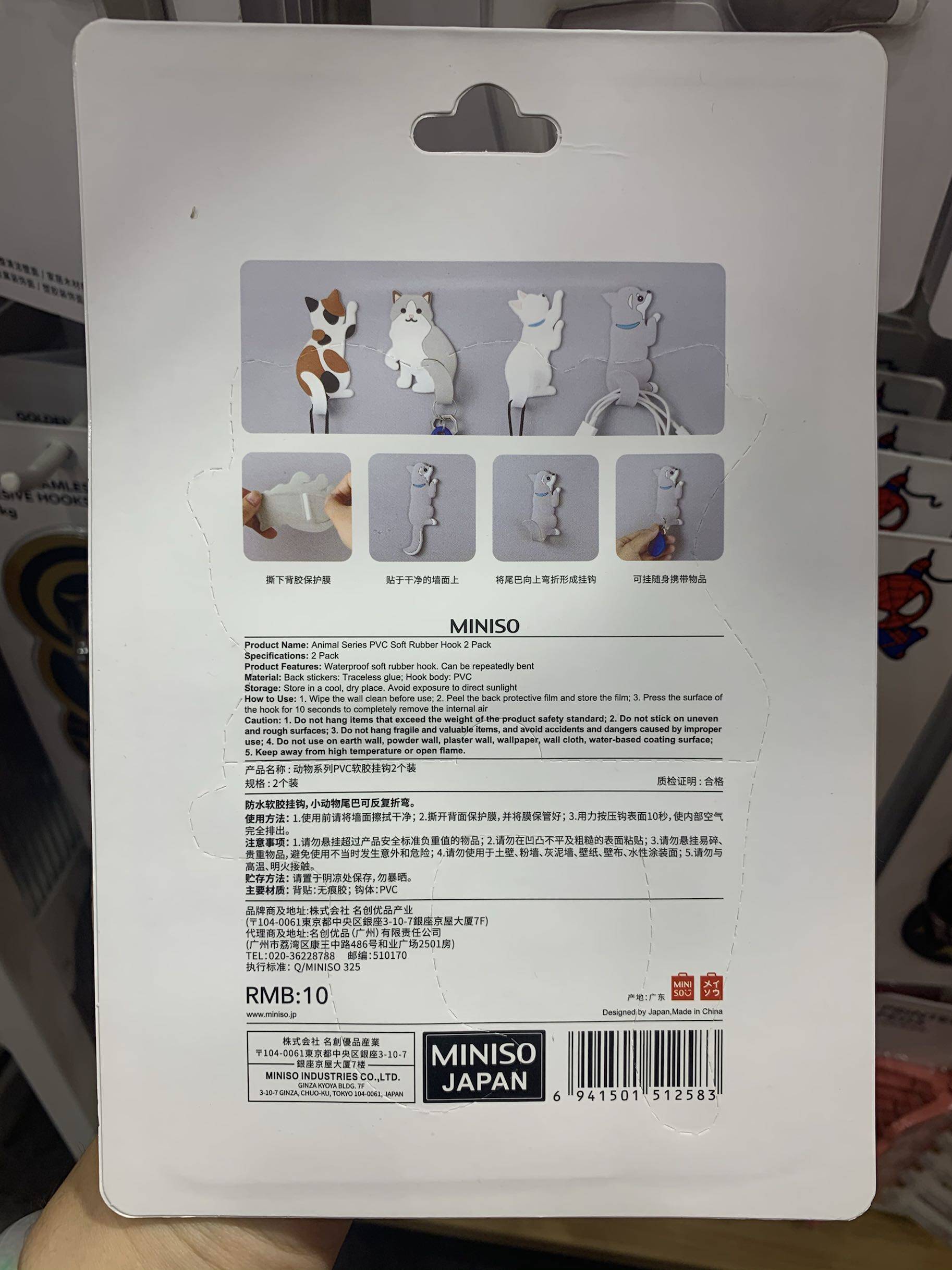 Miniso famous product animal series PVC soft glue hook cat dog cute sticker free punch sticky hook
