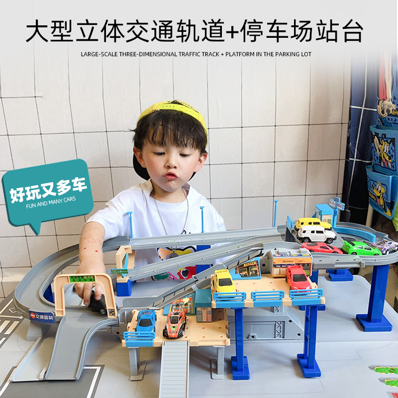 Rail car Rail toy train City car building parking lot Children boy electric suit Birthday gift
