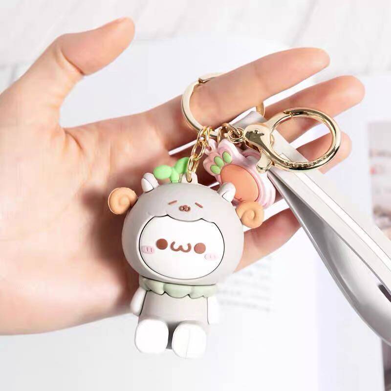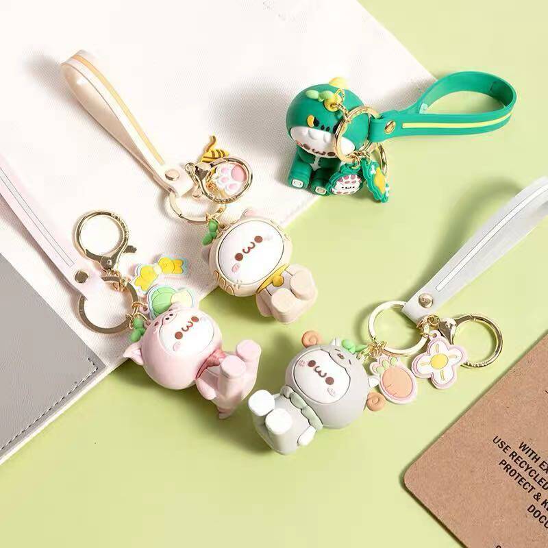 (green) dinosaur group key buckle (yellow) yellow cock button button (pink) pink cat key buckle (grey) sheep's key button (rice yellow) orange cat button button (blue)