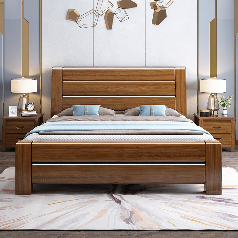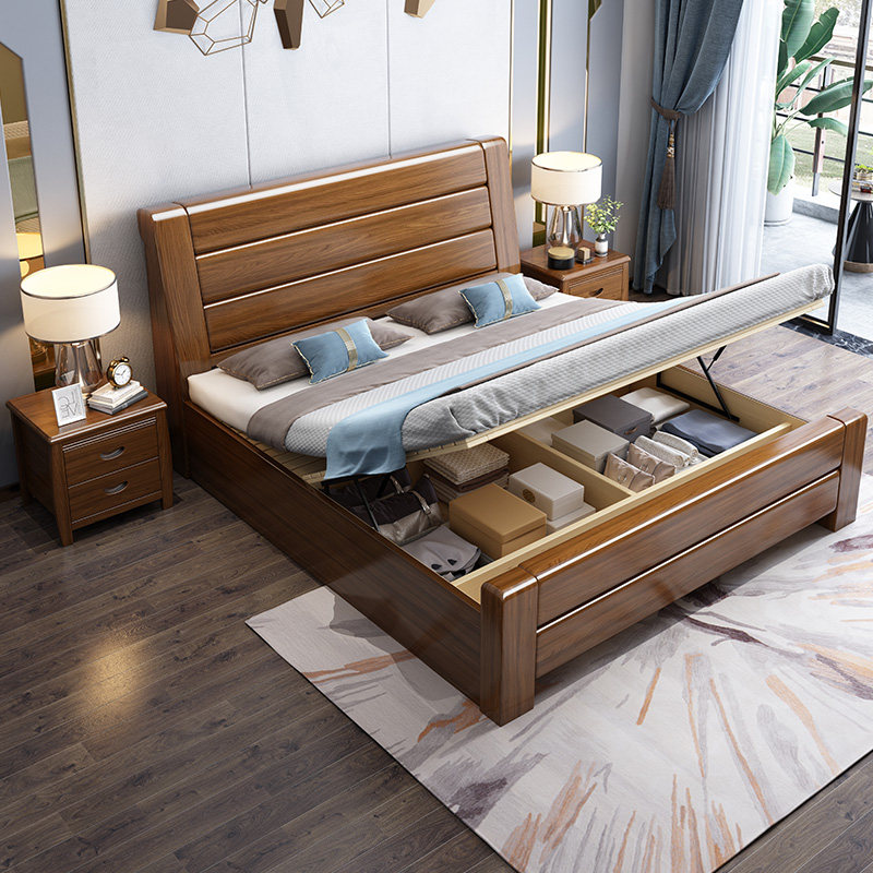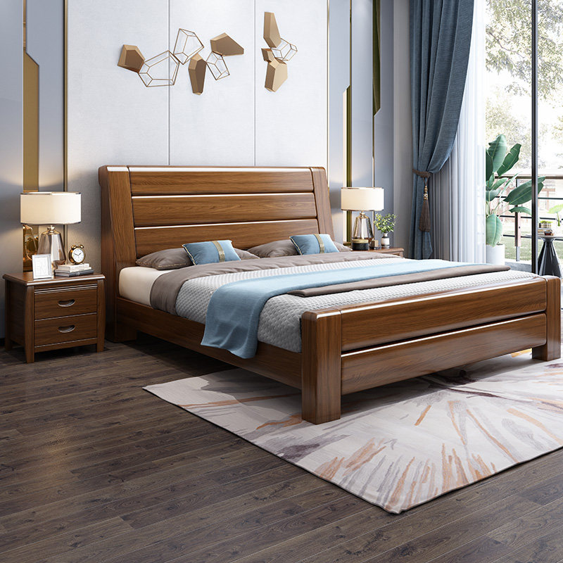 Solid wood bed new Chinese style 1 8 meters modern minimalist marriage bed 1 5 meters walnut master bedroom storage double bed furniture