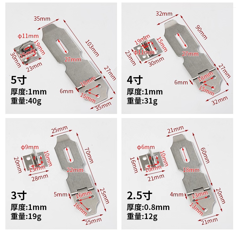 Thickened stainless steel lock card lock buckle cabinet drawer padlock old-fashioned wooden door latch door buckle door bolt door nose pin