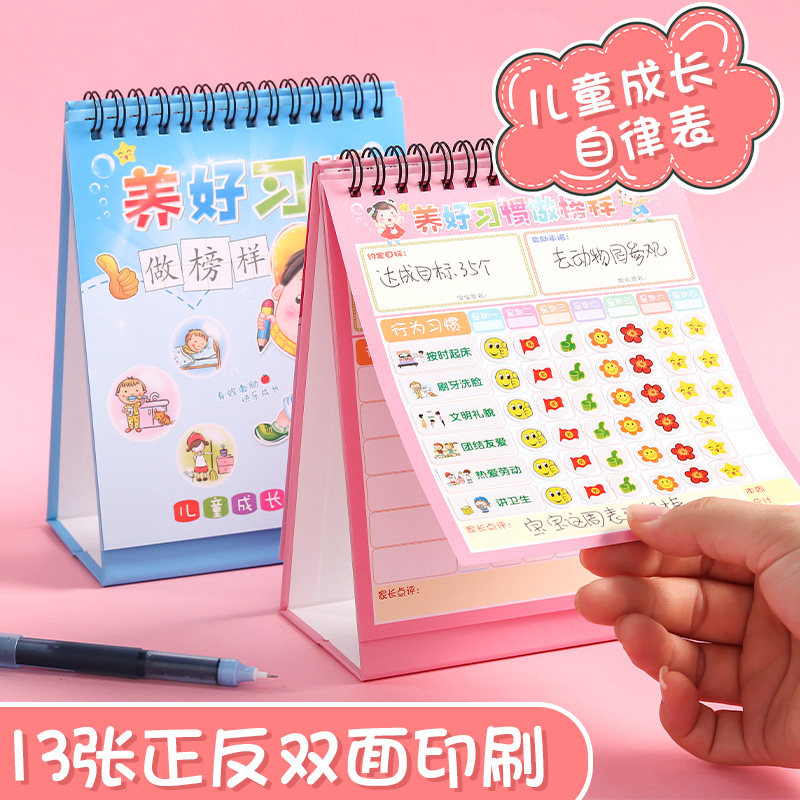 Desk calendar type children's learning self-discipline table pupils learn to punch in the self-discipline artifact good habit development plan table baby growth record table life record incentive table reward stickers - Taobao