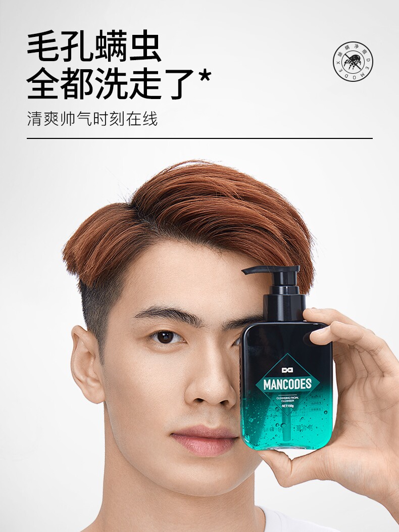 Left-colored man wash his face with the removal of the powder oil to dedicate the black head and the skin care set group