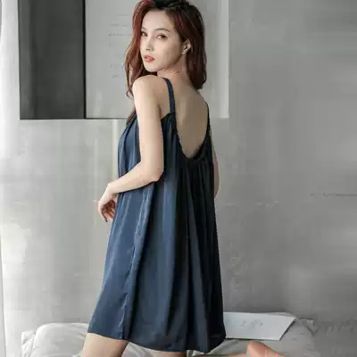 New nightdress women's summer ice silk small sexy cute sweet sling thin loose silk long pajamas