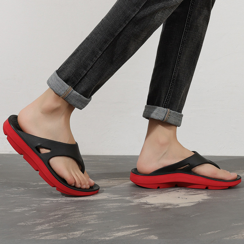 The human slippers summer bow supports 46 thick sole shock - relief large size 48 anti - skid outdoor wear 49 sports recovery slippers