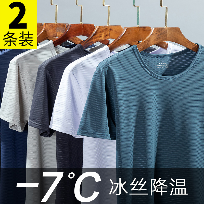 Men's ice silk short sleeve T-shirt slim fit mesh speed dry summer breathable loose clothes Dad summer clothes middle-aged half sleeves