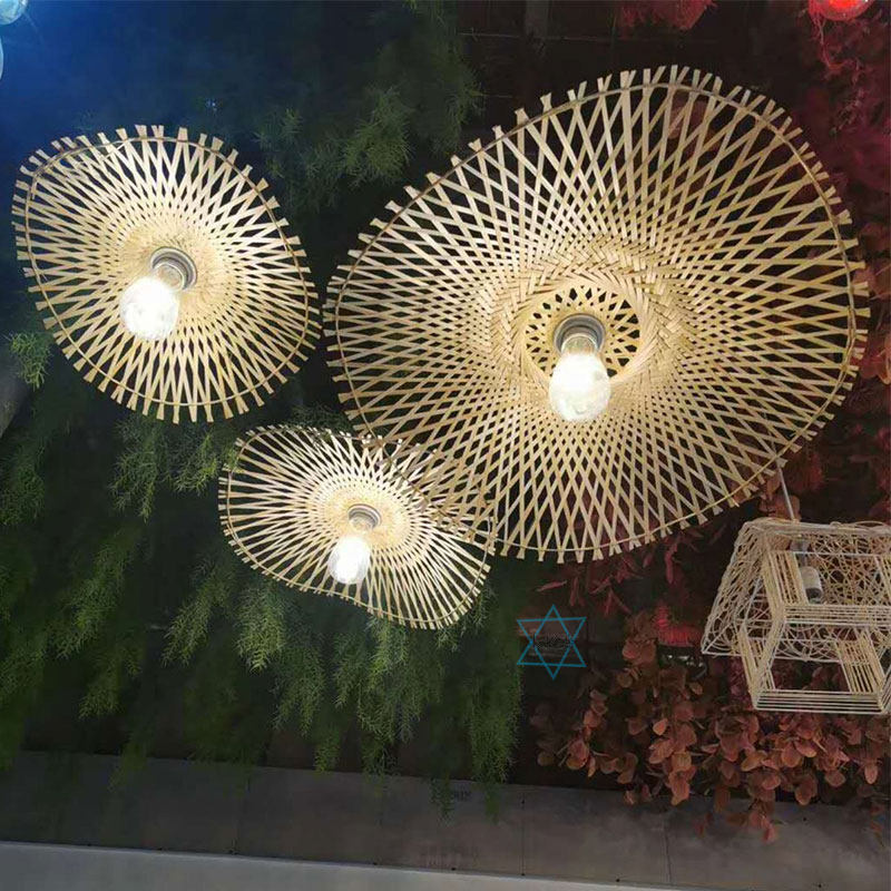 A large and small three sets of three sets of handmade bamboo hanging lamp Three sets 30-45-55 Width B Three sets of three sets 25 * 25CM rattan chandelia lamp One 30 * 40CM rattan choreography