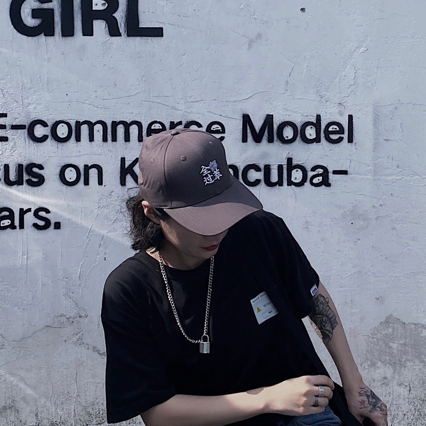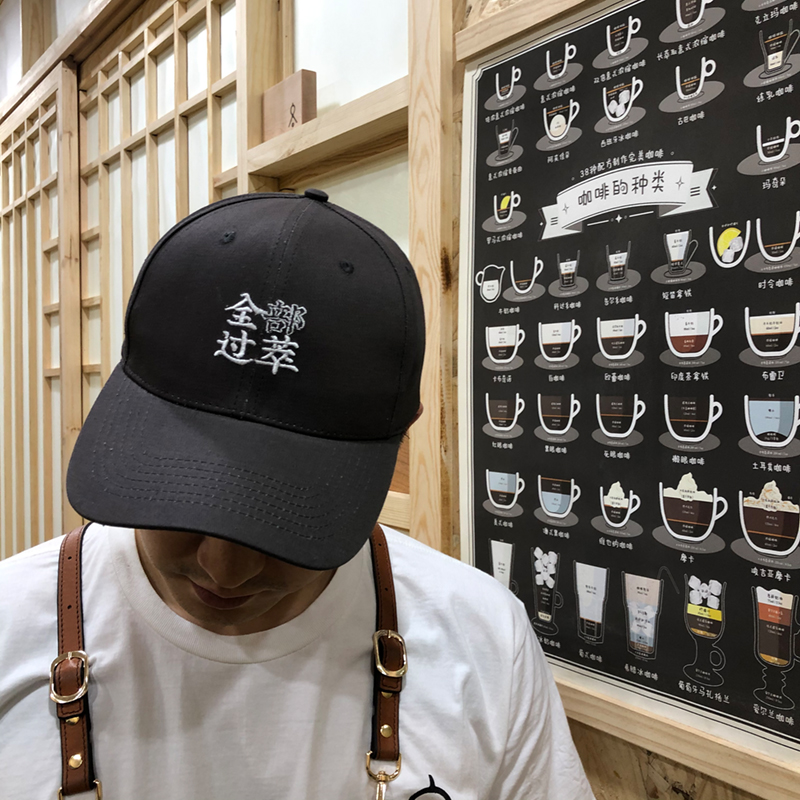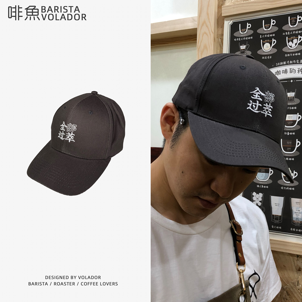 All over-extracted) dark brown embroidered peaked cap barista hat coffee man baseball cap