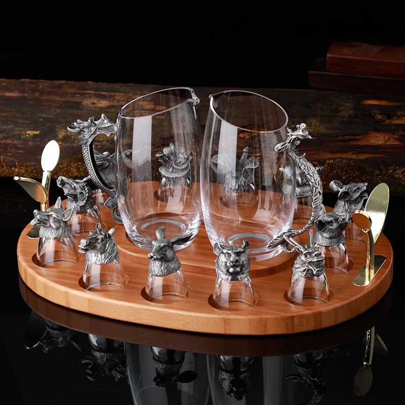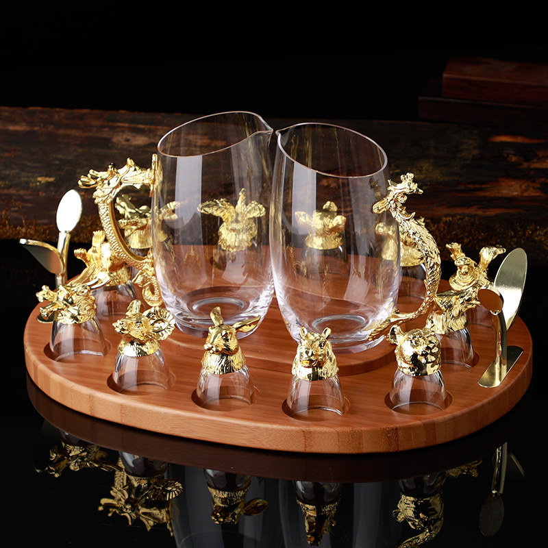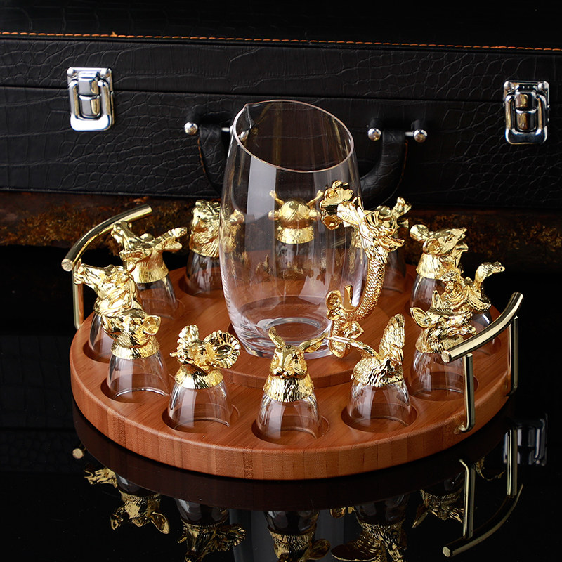 12 Chinese Zodiac white wine cup dispenser cup holder set home Chinese retro wine cup wine cup Cup Cup