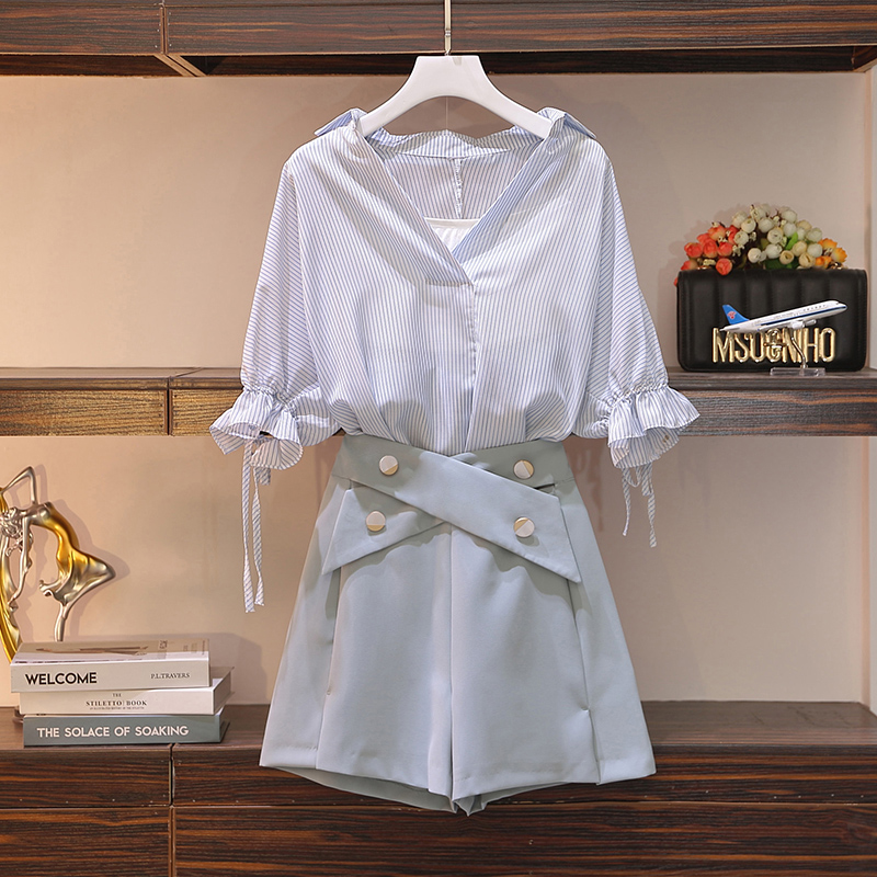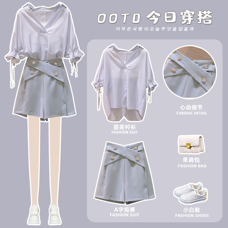 Two pieces of fashion shorts for the new Xiaofat sister appears thin age subtraction suit for fashion slim snow textile in 2023