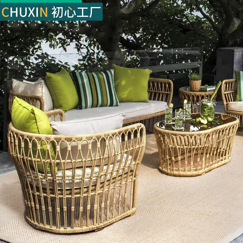Rattan chair sofa Outdoor casual composition Living room vines Woven Balcony Sunscreen Waterproof Minsleep Villa Patio Terrace Terrace