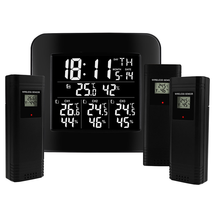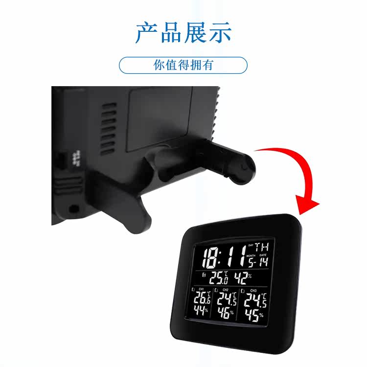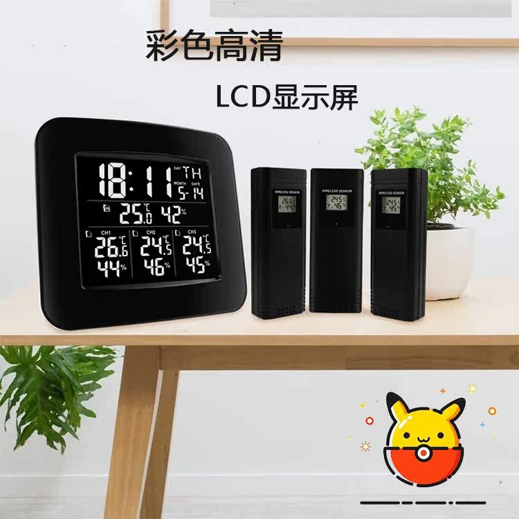 Home indoor and outdoor hygrometer wireless thermometer hygrometer host can display 3 extension data at the same time