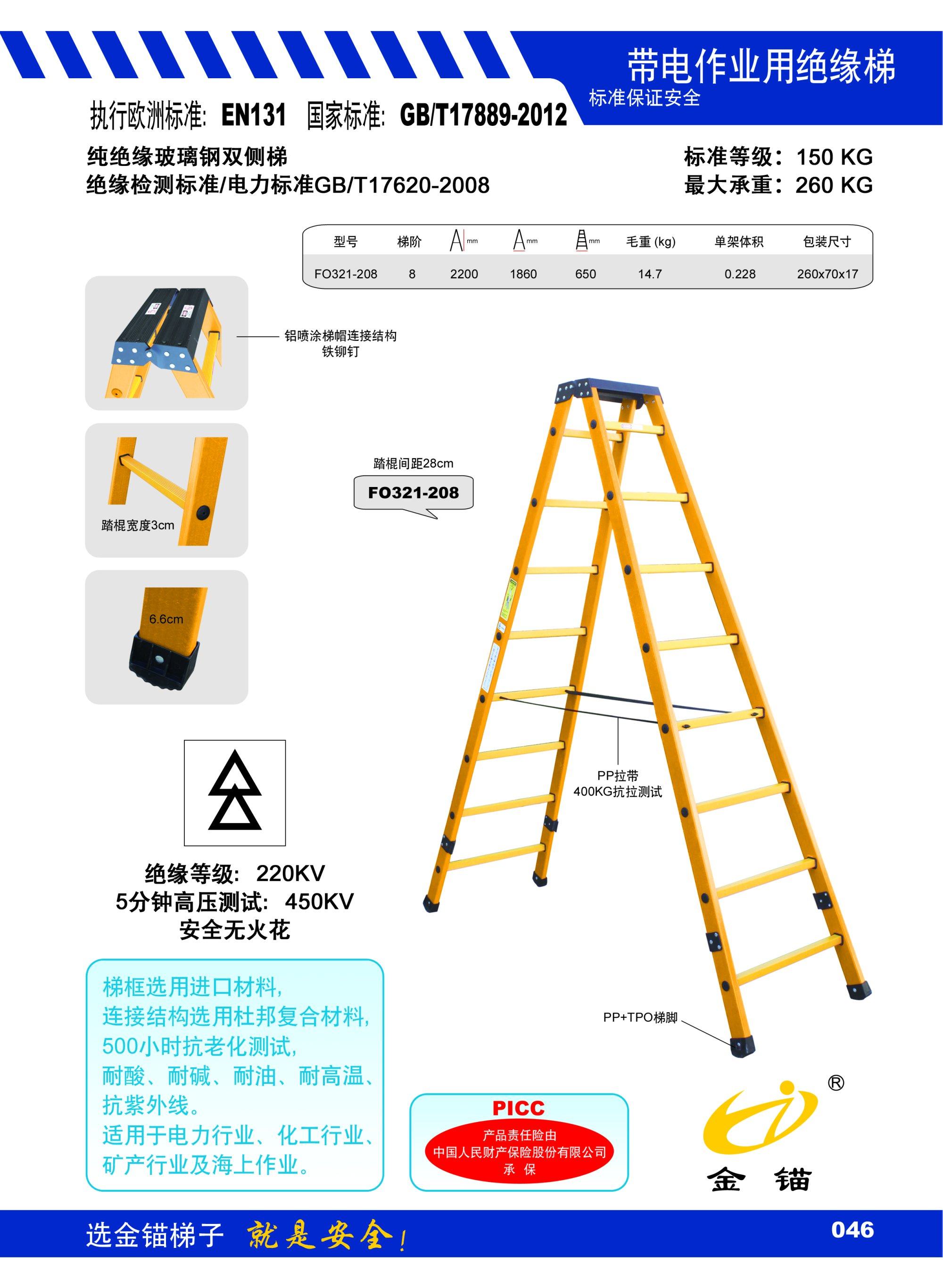 Brand new gold anchor insulation glass double side ladder F0321-208