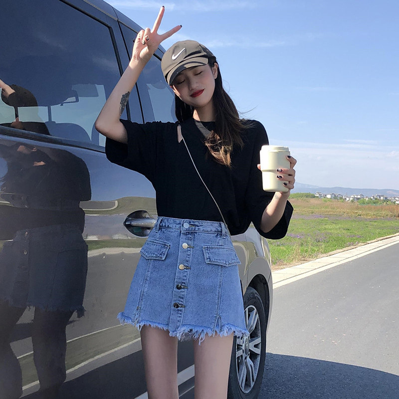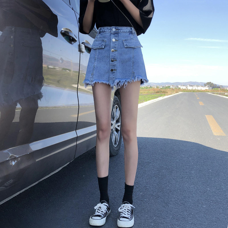 Jeans Skirt woman Summer thin section 2022 new loose high waist display slim width legs a word hot pants hot pants Chains