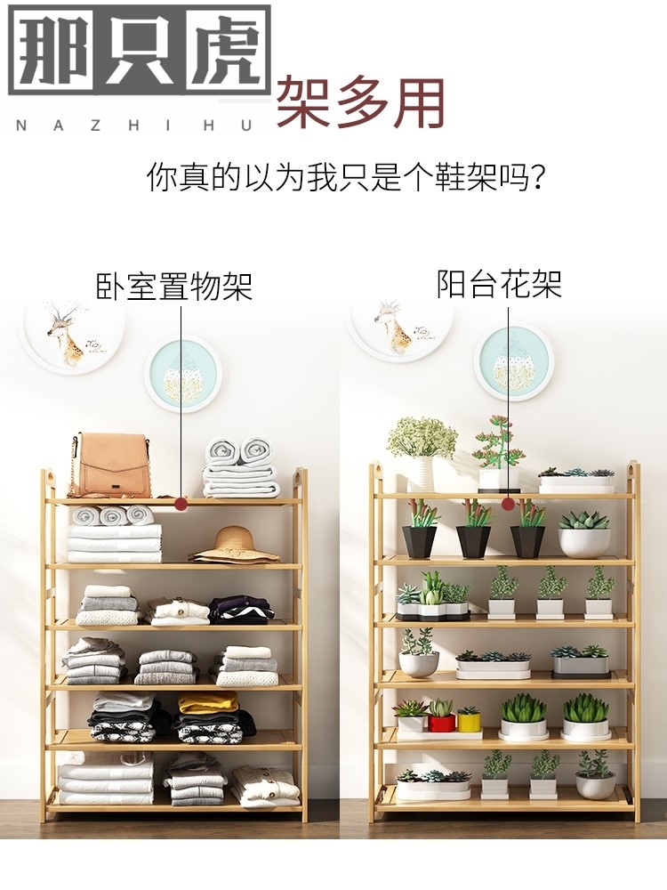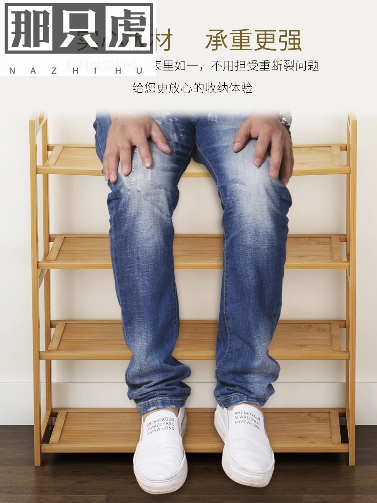 Flat shoe rack solid wood Nan bamboo multilayer assembly Easy home doorway containing wooden shoe cabinet 50-100CM long