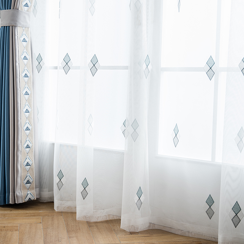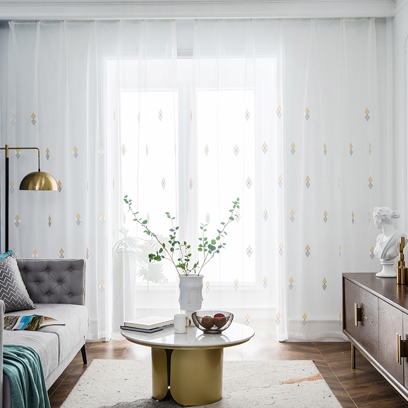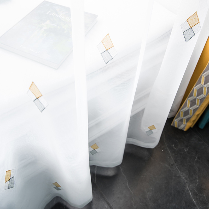 Modern minimalist embroidered silk curtain CUSTOM LIVING ROOM BALCONY BEDROOM FLOATING WINDOW PARTITION WHITE SAND CURTAIN DRAPE CURTAIN CUSTOM