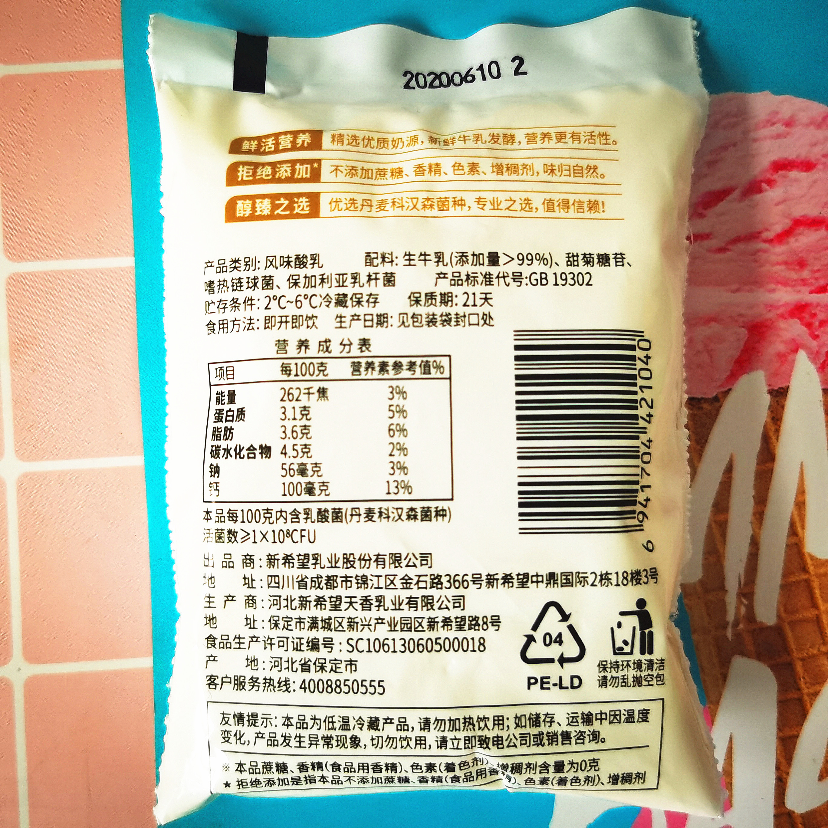 New Hope Qingning Yogurt 100g Sucrose-free Sour Milk No Probiotics Flavor Fermented Milk Breakfast Milk