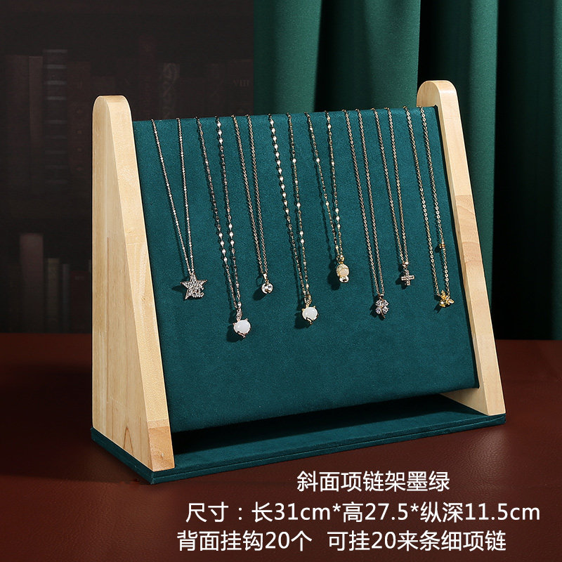 Woody Slant Necklace Frame Rice Suede Delivery Non-slip Hook {2nd Generation Upgrade Reinforcement} Wooden Beveless Necklace Rack Ink Green Send Non-slip Hook {2nd Generation Upgrade Reinforcement} Woody Beveless Necklace Rack Coffee Send Non-slip